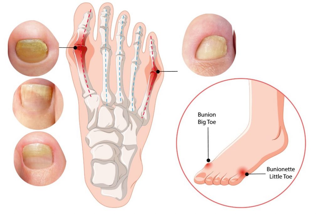 Kann ein verdickter Zehennagel (durch Nagelpilz oder alte Verletzungen) zu Ballenzeh-Schmerzen führen?